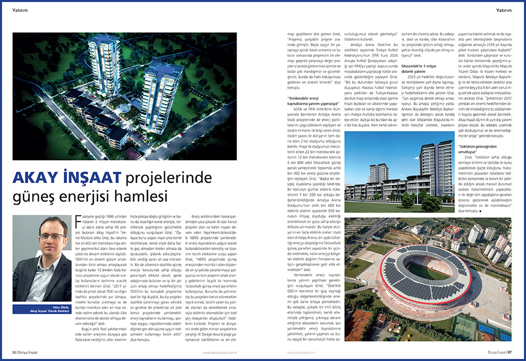 AKAY İNŞAAT A.Ş. Projelerinde Güneş Enerjisi Hamlesi